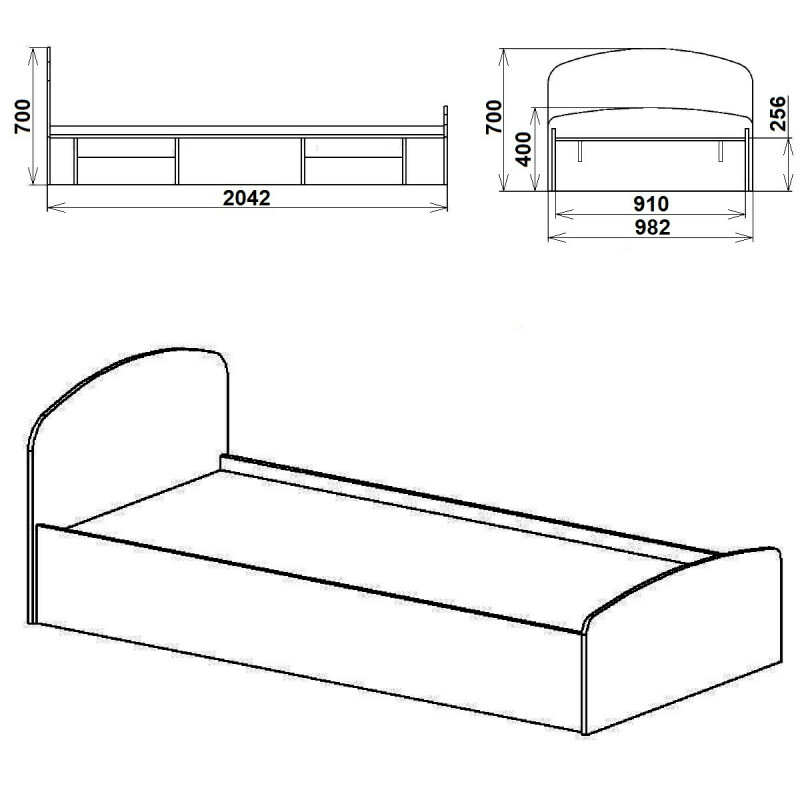 Внимание, во избежание недоразумений, перед заказом товара, просьба уточнять цену и наличие! Наименование: Размер: (ШхВхГ): Кровать Нежность-90 МДФ 982х300(700)х2042 Цвет: