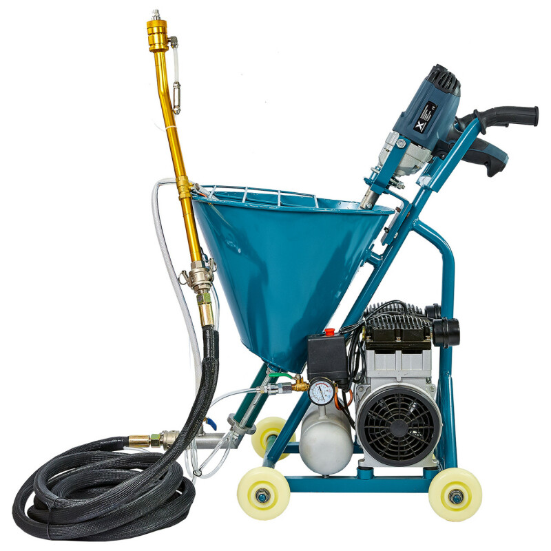 Штукатурная, шпаклевочных станция DP-N770 устройство для нанесения штукатурки, шпаклевки, гипса, гидроизоляции, для художницы и других материалов средней и густой консистенции. Станция работает с штукатуркой максимальной фракции 1.5мм, и производительностью 1-12л / мин Скорость напыления 60 квадратов за час Общая потребляемая мощность 2600Вт. Встроенный двухпоршневой (малошумный) компрессор мощностью 1500W. Ресивер 10л. Шнековый насос быстрый и простой демонтаж шнека, что позволит качественно и быстро сделать очистку после завершения работы. удобный пистолет с тремя различными насадками. максимальная подача 10 л раствора (подача регулируется. высота подачи распыла 10м. шланг подачи 5м. бункер объемом 25л максимальный размер зерна 1.5 мм максимальное рабочее давление 8 атм пульт управления 3 сменные сопла удобный пистолет DP-N770 Шпатлевка (начальный уровень) Напряжение: 220 В / 50гц Общая потребляемая мощность 2600вт,мощность компрессора 1500вт,мощность миксера 1100вт Максимум. Размер зерна: 1,5 мм Максимум. Давление: 8 бар Горизонтальное расстояние доставки: 10 м Высота вертикальной доставки: 5 м Максимум. Скорость потока: 10 л / мин Объем бункера: 25 л Поставляется в деревянной коробке Размер: Ширина: 48 см Высота: 82 см Глубина: 75 см