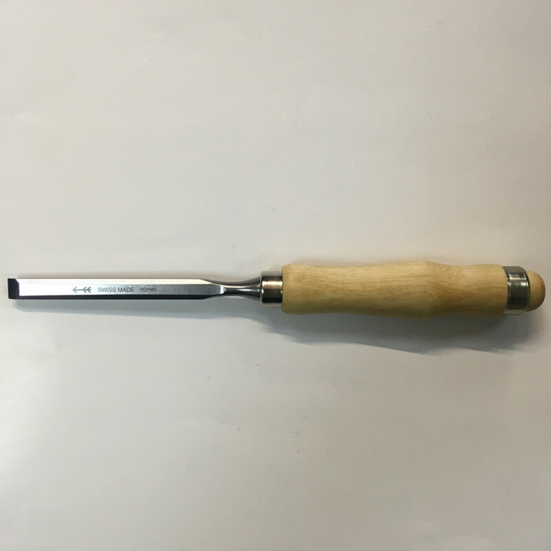Долото Pfeil плоское с деревянной рукоятью с кольцом, 10 mm Z 1.10 для резьбы по дереву PFEIL SWISS MADE