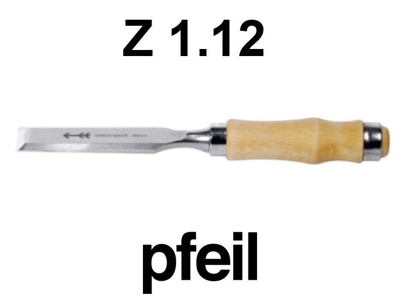 Долото Pfeil плоское с деревянной рукоятью с кольцом, 12 mm Z 1.12 для резьбы по дереву PFEIL SWISS MADE