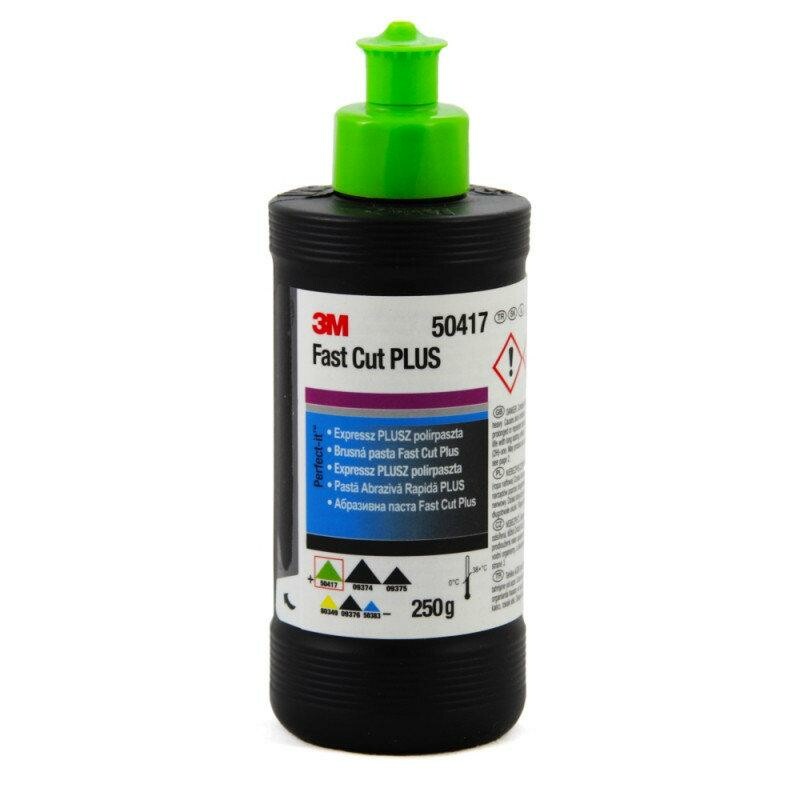 Внимание: Данный товар отправляем только после полной оплаты Внимание: Данный товар отправляем только после полной оплаты полировальная паста 3м 50417 Fast cut plus разработана для быстрого и эффективного удаления шлифовальных рисок, мелких и средних следов окисления и царапин со всех типов лакокрасочных покрытий. Значительно улучшена скорость полировки и качество обработки поверхности. • Эффективно удаляет круговые риски или «голограммы». • Превосходный окончательный блеск. • Используется на полировальных машинах. • Повышает продуктивность и эффективность работы. • Остатки пасты легко и быстро удаляются. • Не разбрызгивается. • Подходит для заводских и перекрашенных лакокрасочных покрытий. • Высокое качество отделки поверхности.
