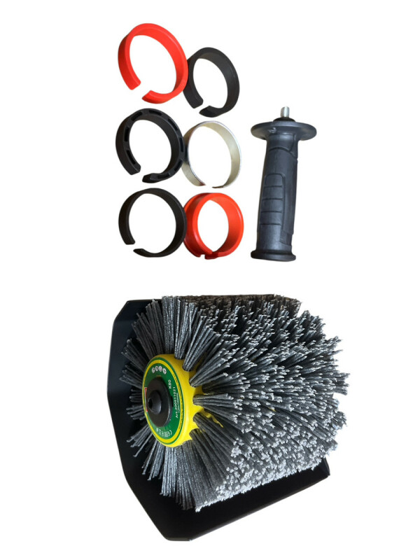 ПОДХОДОДИТ НА ВСЕ БОЛГАРКИ 125ММ Внимание: щетка в комплекте не идёт! Насадка щеточная шлифовальная для болгарки Titan USSN316 предназначена для использования специальных щеток для обработки следующих материалов: металл, древесина, полимерные и другие аналогичные материалы, а также камень. В зависимости от того, с какой щеткой будет работать эта насадка, Вы сможете выполнять зачистку, полировку, брошировку, полировку и сатинирование поверхностей из нержавеющей стали, удаление старых лаковых и гальванических покрытий, удаление ржавчины, сглаживание и шлифование древесины Основная ручка имеет очень удобную форму, что способствует комфорту и качеству работы в течение длительного времени. А дополнительная ручка поможет уверенно держать и направлять инструмент для более качественного выполнения работы.