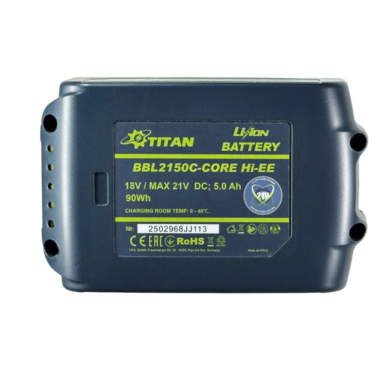 Аккумуляторная батарея TITAN PBL2150 – мощностью 5 Ач Lithium обеспечит увеличение мощности инструментов, отличается надежностью и высокой продолжительностью работы. Особенности аккумуляторной батареи TITAN PBL2150: Встроенный чип для быстрой и бережной зарядки с контролем температуры; Интеллектуальная технология “CORE”, которая оценивает состояние каждой ячейки; Индикатор заряда; Прочная конструкция корпуса; Возможность работы при температуре до -15°; Патентованная система защиты батареи , которая контролирует температуру блока аккумуляторов; При малейшем превышении сработает защита, которая размыкает цепь – исключит поломку аппарата; Рекомендуется заряжать быстрыми зарядными устройствами Titan CORE SYSTEM Hi-EE или Makita LXT; Подходит к аккумуляторным инструментам Titan CORE SYSTEM и аналогичным по конструктиву аккумуляторным инструментам различных брендовых производителей с современным типоразмером «евро-слайдер» (стандарт Makita LXT BL и др.). ) Комплект поставки: Аккумуляторная батарея TITAN PBL2150; Гарантийный талон; Упаковка – картонная коробка.