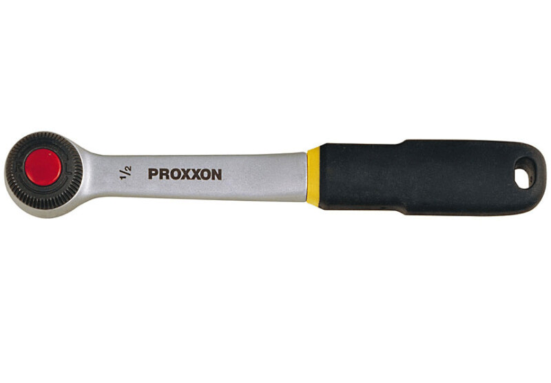 PROXXON 23096, Стандартная трещотка 1/2 ''. С функцией реверса прямо на храповом механизме. Несколько из 52 зубьев входят в зацепление одновременно для передачи чрезвычайно высокого крутящего момента. Кнопка быстрого выпуска для мгновенного освобождения розеток. Головка и вал выкованы из цельной стали CrV. Двойное никелирование с матовым хромированием. Рукоятка из маслостойкого и кислотостойкого TPR (термопластичного каучука) с полезным отверстием для подвешивания.