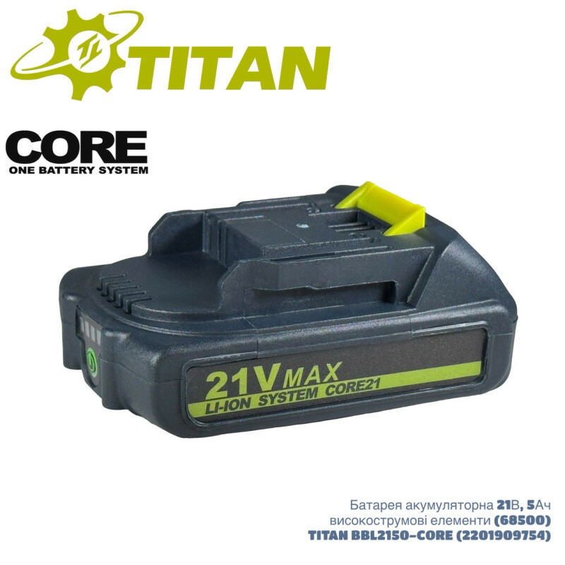 Аккумуляторная батарея BBL2120-CORE мощностью 2 Ач Lithium обеспечит увеличение мощности инструментов, отличается надежностью и высокой продолжительностью работы. Особенности аккумулятора TITAN BBL2120-CORE: Интеллектуальная технология “CORE”, которая оценивает состояние каждой ячейки; Прочная конструкция корпуса; Возможность работы при температуре до -15°; Патентованная система защиты батареи , которая контролирует температуру блока аккумуляторов; При малейшем превышении сработает защита, которая размыкает цепь – исключит поломку аппарата; Совместимость со всеми инструментами TITAN CORE 21 В. Комплект поставки: Аккумуляторы TITAN BBL2120-CORE 2 Ач;