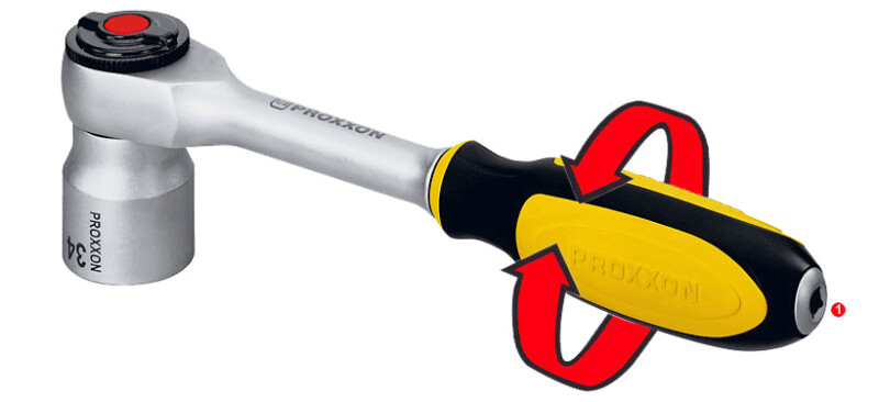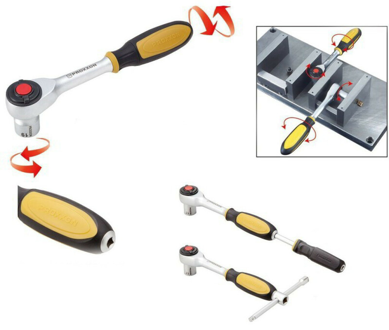ROTARY трещетка 3/8 '' PROXXON Идеальный инструмент для решения проблем с пространством: в системах отопления и охлаждения, серводвигателях, выхлопных системах и автоматических коробках передач. Конструкция с вращающейся рукояткой позволяет предварительно натянуть абатмент в одну сторону. Тогда для ослабления или затягивания достаточно нескольких миллиметров стандартного трещеточного действия. Привод с мелкими зубьями (52 зуба) с удобным переключателем направления движения. Розетки надежно удерживаются на месте до тех пор, пока не будет нажата кнопка разблокировки. NO 23 083 ROTARY-трещетка 3/8 "(привод 10 мм) С адаптером на 1/4 дюйма (6,3 мм) в ручке для установки удлинителя. При правильном использовании здесь также может быть установлен рычаг (трещотка, Т-образный стержень).