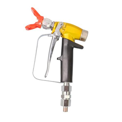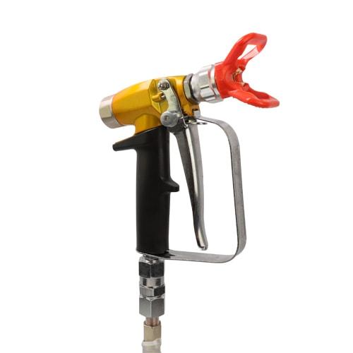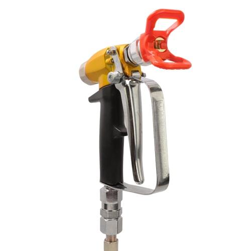 Характеристики / преимущества краскопульта высокого давления DP-650: 1. Применяется для распыления покрытий на водной и масляной основе. Высококачественное уплотнение, устойчивое к действию растворителей, гарантирует, что оно может распылять практически все виды обычных покрытий. 2.Макс. Рабочее давление: 350 бар (5075psi) Корпус пистолета выкован из тонкого алюминиевого сплава, а другие компоненты отлиты под давлением, что обеспечивает высокий уровень сопротивления давлению. 3. Легкое усилие руки, чтобы открыть спусковой крючок. Легкость и удобство открытия спускового крючка, простота и удобство, мягкое нажатие спускового крючка - все это делает работу по опрыскиванию комфортной и не утомительной. 4. Спусковой крючок с предохранительным штифтом, предотвращающий случайное включение пистолета. 5. Предохранительный штифт также может использоваться в качестве переключателя для непрерывного распыления пистолета в течение длительного времени, не нажимая на спусковой крючок рукой. 6. свободный поворотный соединитель шланга для более легкого вращения в любом направлении. 7. Уникальная игла с длительным сроком службы и простотой замены. 8. Встроенный фильтр для пистолета-распылителя с различной сеткой 9. пружина не касается жидкости, продлевает срок ее службы 10. запатентованная внутренняя структура 11.Уникальный дизайн распылительного наконечника, защита наконечника и седло наконечника, простое управление, простая замена, большая безопасность для пользователя (доступны хвостовики наконечника 11,1 мм и 11,4 мм, совместимы с брендом T / W / G) 12.Цветная коробка или двойная блистерная упаковка. Технические характеристики высококачественного безвоздушного краскораспылителя DP-650: Максимум. Давление: 350 бар (5000 фунтов на квадратный дюйм) Входной патрубок: 1/4 ″ NPSM, 1/4 ″ PT, M16 * 1,5 Выходной разъем: 11/16 ″, 7/8 ″ Спусковой крючок с 4 пальцами