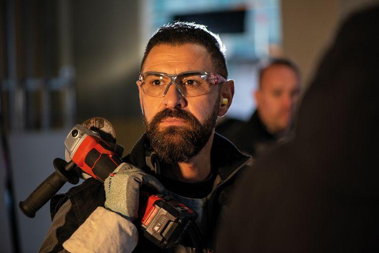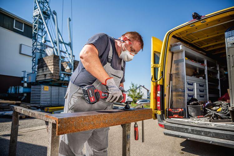 Electronic Management System (EMS) защищает инструмент, продлевает срок службы и повышает эффективность Бесщеточный двигатель с высоким КПД и длительным сроком службы Микропроцессорная электроника с плавным пуском, блокировкой повторного включения после отказа электропитания, контролем температуры, защита от перегрузки, электронными компонентами CDC для поддержания постоянной скорости вращения С электронным тормозом, который останавливает инструмент через 3 секунды Система Anti Kickback, отключает мотор при блокировании диска Идеальная защита от пыли благодаря съемной металлической решетке Очень узкая область захвата со вставками Softgrip для удобного использования Эргономичное рабочее положение руки достигается благодаря боковой ручке расположенной под углом Регулируемый без использования дополнительного инструмента защитный кожух Блокировка шпинделя Аккумуляторная система FLEX: работает с любыми аккумуляторами 18 В FLEX. Поставляется без аккумулятора, Зарядное устройство Технические характеристики: Напряжение аккумулятора 18 В Емкость аккумулятора 2,5 / 5,0 А·ч Макс. диаметр шлифовального инструмента 125 мм Частота вращения на холостом ходу 3500 / 4500 / 6500 / 9000 /мин Крепление инструмента M 14 Размеры (Д x Ш x В) 330 x 75 x 120 мм Вес без аккумулятора 1,85 кг Комплектация: 1 защитный кожух, шлифование Ø 125 №436.860 1 ручка №450.774 1 торцевой штифтовый гаечный ключ №100.110 1 зажимной фланец №335.282 1 Зажимная гайка №100.080
