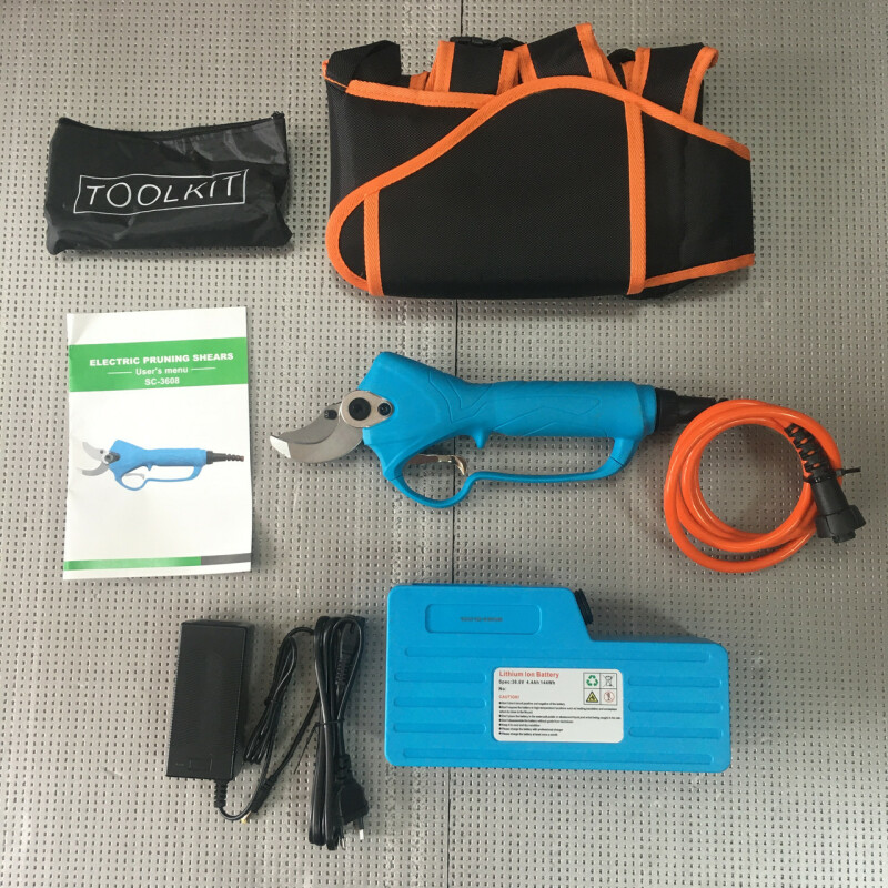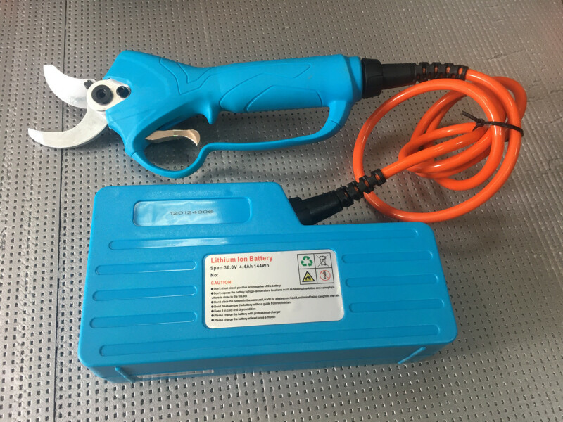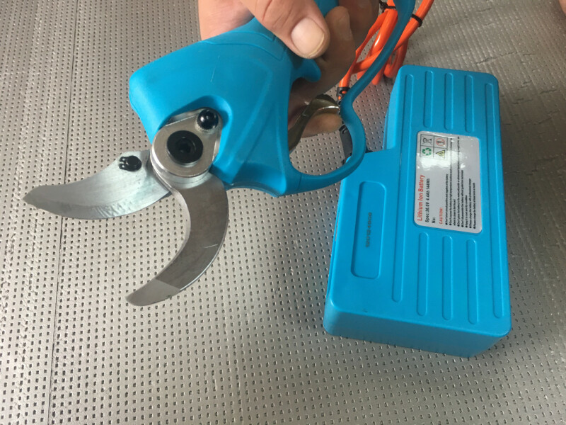 Характеристики Аккумуляторного секатора SC-3608 Максимальный диаметр реза: 0-40 мм. Рабочее напряжение: 36 В. Максимальная мощность: 1080 Вт. Частота вращения двигателя 20000об/мин. Емкость аккумулятора: литиевая батарея 4 Ач. Время автономной работы 10 ч. Время зарядки: 3-4 ч. Температура эксплуатации: -10…+50° С Материал лезвий: сталь SK-5. Вес секатора - 0,9 кг. Вес батареи - 1,3 кг. В комплект набора входит: Электросекатор – 1 шт. Аккумуляторная батарея – 2 шт. Зарядное устройство. Пластиковый чемодан. Отвертка 1шт. Ключ-головка. Шестигранник. Шлифовальный камень. Тюбик с маслом для смазывания инструмента.
