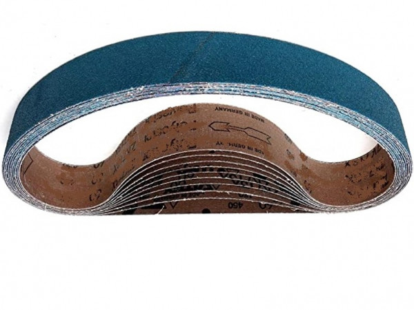 ЦЕНА ЗА 1 ШТ Технические характеристики: Размер: 40 x 760 мм. Зерно: 80. Количество в упаковке: 5 штук. Цвет: голубой или сине-зеленый. Материал основы: прочная армированная ткань с хлопковым основанием. Описание: высококачественная шлифовальная лента из оксида циркония с выгодным соотношением цены и качества для обработки твердых поверхностей и снятия заусенцев. Материалы которые можно обрабатывать: нержавеющая сталь, углеродистая сталь, все виды чугуна, алюминий, его сплавы и все цветные металлы, полиуретан, пластик и армированный стеклопластик, твердая древесина.. Инструмент привода: Titan PSSM326, Titan USSN326, а также гриндеры и ленточные шлифмашины других производителей. Отличительные особенности: Популярная лента для тех, кто занимается изготовлением ножей и обрабатывает изделия из нержавеющей стали (отсутствие оксида железа в составе абразива не дает образовываться ржавчине на поверхности нержавейки). Работает агрессивно и долго до полного износа абразива, в отличие от электрокорунда, который начинает агрессивно, а потом быстро «садится». Агрессивное шлифование, долгий срок службы и высокая износостойкость. Непрерывный эффект самозатачивания и новые острые зерна оксида циркония, которые постоянно обновляются. Требует небольшого прижима. Хорошо отводит нагрев за счет того, что зерна скалываются, забирают с собой тепло и не дают заготовке перегреваться, что важно при обработке нержавейки.