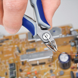 Описание кусачки прецизионные для самых тонких работ по резанию, например, в электронике и точной механике точно шлифованные режущие кромки с очень малыми фасками для точной резки чувствительных деталей электроники; также без фаски для резки заподлицо режущие кромки дополнительно закалены токами высокой частоты до твердости примерно 64 HRC почти на 20 % меньший вес по сравнению с традиционными клещами для электроники винтовой шарнир с особенно тщательно выполненными рабочими поверхностями для равномерного движения двойная пружина с легким ходом Эргономичные двухкомпонентные чехлы Хромистая сталь для шарикоподшипников, кованая, многоступенчатая закалка в масле Модель: круглая головка Тонкое различие Прецизионные клещи для электроники KNIPEX производятся из высококачественной шарикоподшипниковой стали и подвергаются самой тщательной обработке. Каждое раскрытие происходит без люфта, плавно и равномерно. Каждый рабочий шаг выполняется надежно и точно. No. 7902125 EAN 4003773061281 Клещи вороненые Головка полированные Ручки с двухкомпонентными чехлами Форма 0 Параметры резания / мягкая проволока (диаметр) 0,2 — 1,7 Ø mm Параметры резания /проволока средней твёрдости (диаметр) 1,3 Ø mm Параметры резания / твёрдая проволока (диаметр) 0,7 Ø mm B 10 mm A 11 mm D 6,5 mm Длина 125 mm Вес нетто 59 g