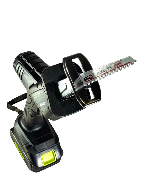 Аккумуляторная сабельная пила TITAN PRS6021-CORE Базовая комплектация, без зарядного устройства и без аккумулятора TITAN SYSTEM CORE 21 PRS6021-CORE Аккумуляторная сабельная пила. Технические характеристики Число ходов/мин: 0-3000 Длина рабочего хода - 15мм Глубина распила (дерево) - 60мм Глубина распила (металл) - 3мм Питание от батарей - 18-21В Вес без батареи - 1,0 кг. Вес с батарей 2Ач - 1,3 кг. Преимущества ● Аккумуляторная сабельная пила TITAN PRS6021-CORE совместима со всеми батареями системы TITAN CORE 21, а так же с помощью системы адаптеров, можно использовать батареи от 18В до 21В, почти всех производителей аккумуляторного инструмента (адаптеры поставляются опционно). ● Аккумуляторная сабельная пила TITAN PRS6021-CORE обладает не большим весом и компактными размерами, хорошо сбалансирована, удобно работать одной рукой. ● Система быстрой замены лезвия без применения дополнительных инструментов. ● Защита от пыли и влаги обеспечивает длительный срок службы. ● Выключатель с блокировкой и регулятором частоты хода, для комфорта пользователя. ● LED подсветка, рабочей зоны. ● Всторенная защита от переразряда батареи. ● Эргономичный дизайн с мягкой прорезиненной ручкой, не скользит в руке и гасит вибрацию. Комплектация Сабельная пила TITAN PRS6021-CORE - 1шт. Запасные пилочки - 2шт. (дерево и металл) Инструкция по эксплуатации - 1шт. Пластиковый чемодан. PRS6021-CORE Поставляется, без зарядного устройства и без аккумулятора. Без зарядного устройства и без аккумулятора Без зарядного устройства и без аккумулятора Без зарядного устройства и без аккумулятора Без зарядного устройства и без аккумулятора