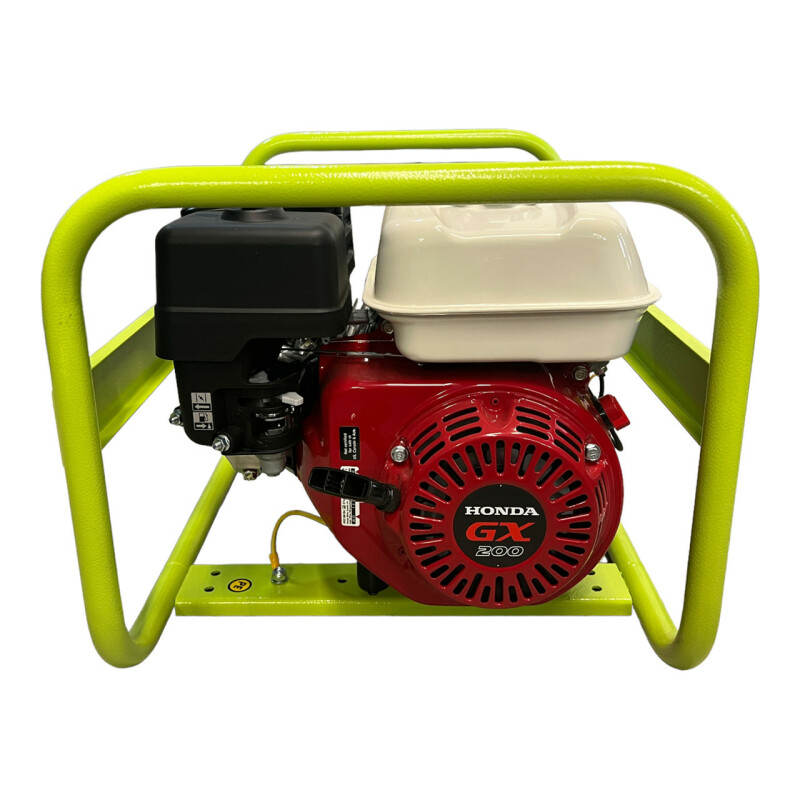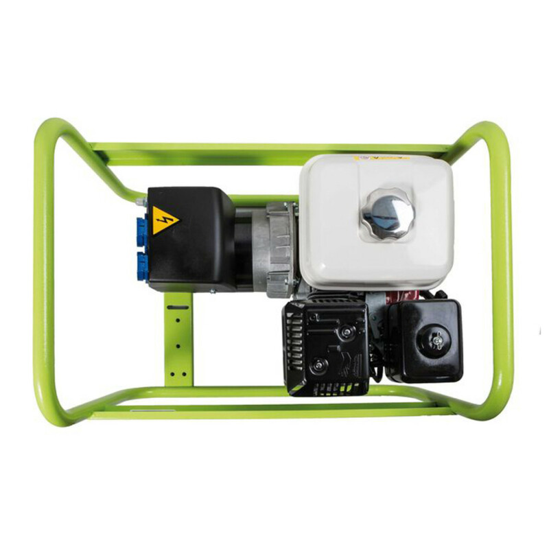 Бензиновый генератор Pramac E4000 представляет собой генераторную установку для интенсивного использования, имеющую прочную конструкцию с несущей трубчатой рамой, которая упрощает использование и техническое обслуживание.Разработанный для больших нагрузок Pramac E4000, он оснащен источником питания 230 В с максимальной мощностью 3,1 кВт ( 3,4 кВА) и двигателем Honda GX200 с воздушным охлаждением объемом 163 куб. С пультом управления и 2 розетками Schuko 230В 16А IP54. Компактный и удобный для переноски Разработанный для использования в строительстве, сельском хозяйстве и промышленности, этот генератор Pramac очень компактен и удобен в транспортировке, а прочная рама защищает его от нежелательных ударов. Двигатель Honda GX200 Этот одноцилиндровый 4-тактный двигатель Honda OHV имеет рабочий объем 196 куб.см при мощности 4,5 л.с., с чугунным цилиндром и частотой вращения двигателя 3600 об/мин. Легкий запуск, низкое потребление и низкий уровень вибраций: созданы для отличной работы. Бесщеточный генератор переменного тока класса H с двухполюсной защитой IP 23. Конденсаторная система регулирования напряжения. Отличная автономность для интенсивного использования Автономность при 100% нагрузке 2,63 ч, при расходе топлива при 100% нагрузке не более 1,18 л/ч. Характеристики: Максимальная мощность: 3,1 кВт Номинальная мощность: 2,6 кВт Тип генератора: Открытый Выходное напряжение: 230 В / 50 Гц Мотор: Хонда GX 200 Рабочий объем: 196 куб.см Скорость двигателя: 3600 об/мин Фаза: Одна фаза Емкость топливного бака: 3,6 л Автономность (75% нагрузка): 2,63 ч Автономность (100% нагрузка): 1,97 ч Расход топлива при нагрузке 75%: 1,18 л/ч Расход топлива при 100% нагрузке: 1,57 л/ч Шумность: 68 дБ (А) Бесщеточный генератор: класс H Розетки: Schucko 230В 16А 2 шт. Размеры: 64 х 46 х 40 см Вес: 38 кг