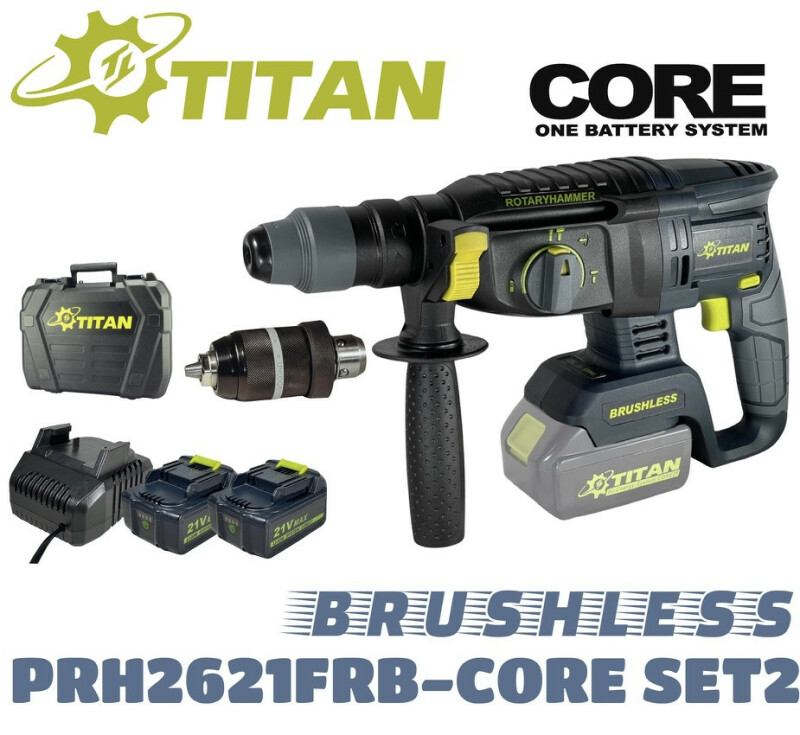 АККУМУЛЯТОРНЫЙ ПЕРФОРАТОР TITAN PRH2621FRB-CORE Brushless SET2