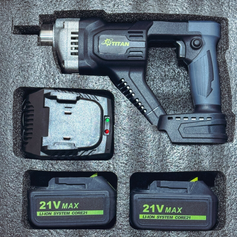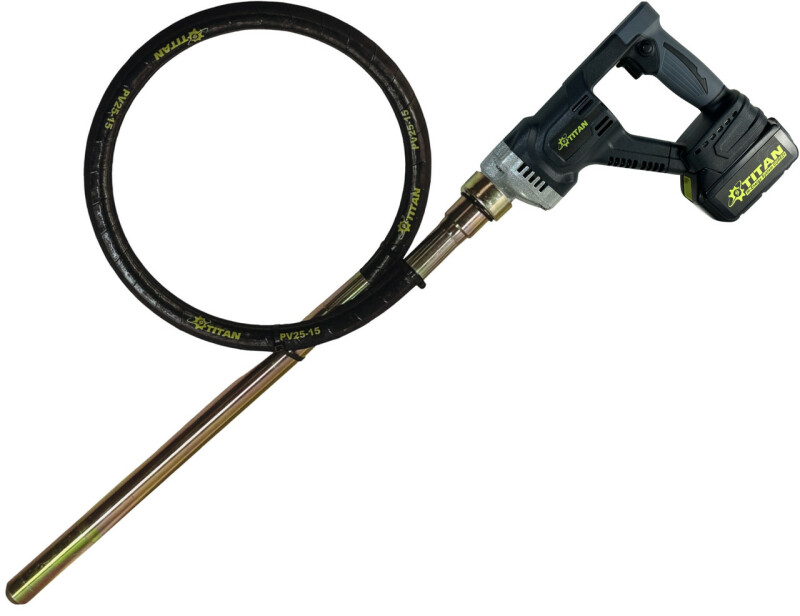 TITAN SYSTEM CORE 21 PGV621B-CORE, Вибратор глубинный аккумуляторный 21В, бесщёточный. Технические характеристики Частота вращения на холостом ходу - 4000 об/мин. Амплитуда колебаний - 1мм Радиус распространения колебаний - 25см. Бесщеточный двигатель 21В. Максимальная мощность - 600Вт. Диаметр булавы - 25мм Длина гибкого вала - 1500мм Питание от батарей - 18-21В Вес без батареи - 1,1 кг. Вес с батарей 5Ач - 1,7 кг. Вес с батарей 5Ач и вибробулавой - 4,8 кг. Преимущества ● Вибратор глубинный аккумуляторный 21В TITAN PGV621B-CORE совместим со всеми батареями системы TITAN CORE 21, а так же с помощью системы адаптеров, можно использовать батареи почти всех производителей аккумуляторного инструмента (адаптеры поставляются опционно). ● В глубинном вибраторе TITAN PGV621B-CORE установлен современный бесщеточный двигатель с высоким КПД, обеспечивающий большую мощность и продолжительность работы без подзарядки. Не требует технического обслуживания. ● Защищённая от воды кнопка. ● Прочный металлический корпус редуктора, обеспечивают высокий ресурс инструмента. ● Всторенная защита от переразряда батареи. ● Эргономичный дизайн с мягкой прорезиненной ручкой, предотвращающей скольжение и поглощающей вибрацию. ● Применяется для создания высококачественного бетона, путем удаления мельчайших пузырьков воздуха, которые в последствии могут привести к уменьшению прочности конструкции. Комплектация ● Вибратор глубинный PGV621B-CORE 1шт. ● Виброшланг с булавой - 1шт. ● Инструкция по эксплуатации - 1шт. ● PGV621B-CORE SET2 Поставляется с 2 батареями BBL2150-CORE 5.0 Ач и зарядным устройством.