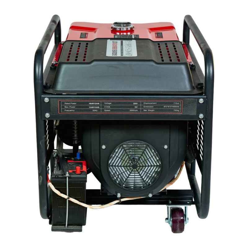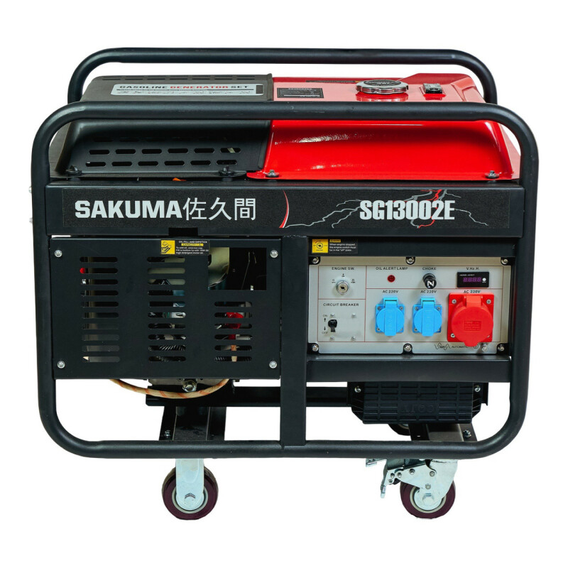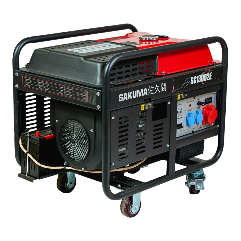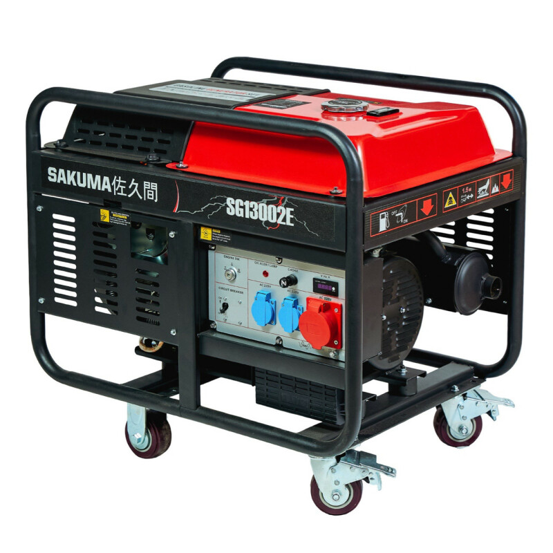 Бензиновый генератор SAKUMA SG13002E. Технические характеристики Частота переменного тока: 50Гц. Напряжение переменного тока: 220В. Пиковая мощность: 13кВА (12кВт). Номинальная мощность: 11кВА (10кВт). Система запуска: ручная/электрическая. Емкость топливного бака: 35,0 л. Общий удельный расход топлива: 0,32 л/кВт. Розетка переменного тока: 220 В/16 А 2 шт. Розетка переменного тока: 220В/32А 1шт. Уровень шума при нагрузке 50% с отрывом 7м: 76дБ(А) Модель двигателя: SG2V80F Мощность двигателя: 23 л.с. Рабочий объем: 713 куб.см. Тип двигателя: 2-цилиндровый, 4-тактный, с верхним расположением клапанов. Система зажигания транзисторная. Система охлаждения принудительная воздушная. Емкость масла 1,2 л. Габариты упаковки: 880х630х800мм. Вес 150/160кг. Гарантия 12мес. Страна регистрации бренда – Япония. Преимущества ● Бензиновый генератор SAKUMA SG13002E, оснащенный мощным двухцилиндровым двигателем с АВР, который обеспечивает максимально стабильную частоту 50Гц и постоянное напряжение 220В. ● Ротор и статор имеют медную обмотку. ● Индикатор низкого уровня масла. ● Индикатор нагрузки. ● Счетчик моточасов с дисплеем, который также отображает напряжение и частоту. Комплектация ● SG13002E бензиновый генератор. ● Свечной ключ - 1шт. ● Лейка для масла - 1шт. ● Комплект колес с ручками - 1шт. ● Лейка для масла - 1шт. ● Инструкция по эксплуатации - 1шт. Переведено с помощью (бесплатная версия)