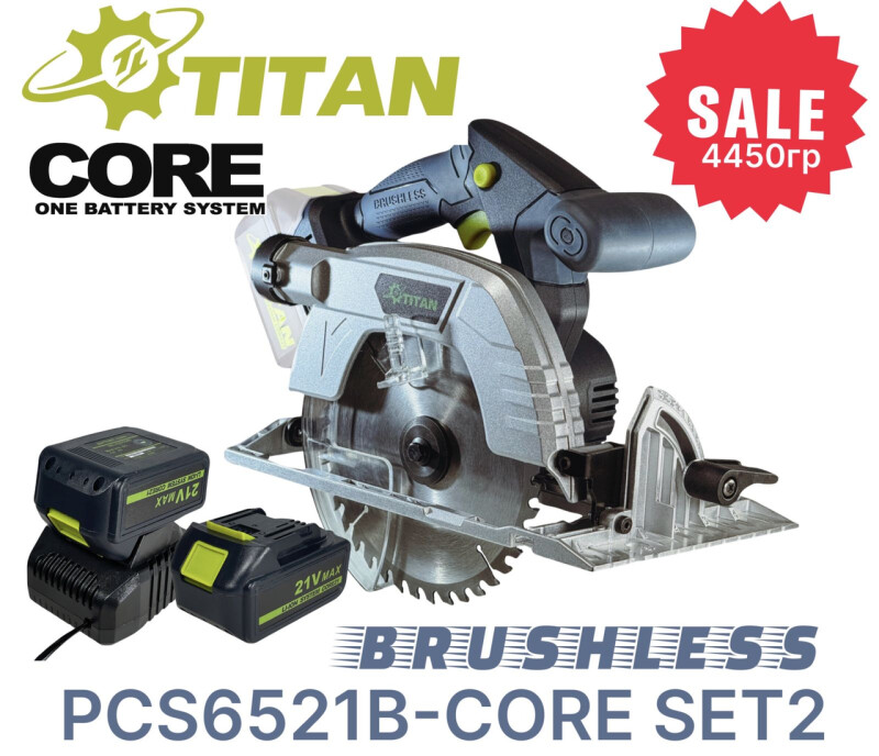 Интернет-магазин megapega.com.ua - Инструмент и Мебель большой выбор товара по низким ценам\\Аккумуляторная дисковая пила TITAN PCS6521B-CORE SET-2