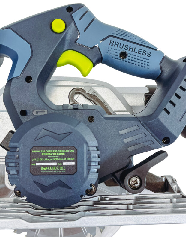 Технические характеристики Бесщеточный двигатель. Питание от батарей: 18-21В. Частота вращения без нагрузки: 5200 об/мин. Максимальный диаметр пильного диска: 190мм. Внутренний диаметр пильного диска: 20/25мм. Максимальная глубина пропила под прямым углом: 65мм. Максимальная глубина пропила под углом 45º: 30мм. Вес без батареи: 2,7кг. Вес с батарей 5Ач: 3,5 кг. Преимущества ● Аккумуляторная циркулярная пила TITAN PCS6521B-CORE совместима со всеми батареями системы TITAN CORE 21, а так же с помощью системы адаптеров, можно использовать батареи от 18В до 21В, почти всех производителей аккумуляторного инструмента (адаптеры поставляются опционно). ● Аккумуляторная цепная пила оснащена мощным бесщеточным двигателем постоянного тока, с высоким КПД, обеспечивающем большую мощность и продолжительность работы без подзарядки аккумулятора, по сравнению с щеточными электродвигателями. Увеличенный срок эксплуатации без технического обслуживания. ● Функция защиты от перегрузки, гарантирует безопасную работу пользователя, в случае аварийной ситуации (внезапного замедления или остановки диска) срабатывает автоматическая остановка электромотора, для возобновления работы необходимо перезапустить пилу. ● Циркулярная пила Titan PCS6521B-CORE предназначена для резки МДФ, дерева, ПВХ. ● LED подсветка зоны реза обеспечивает улучшенную видимость рабочей поверхности, что значительно повышает точность и безопасность выполнения работ. ● Алюминиевая, отлитая под высоким давлением подошва обеспечивает длительный срок службы и устойчивость к искажениям, гарантируя точность выполнения резов как прямых, так и под различными углами. ● Аккумуляторная цепная пила обладает не большим весом всего 3,5 кг (Вес включая батарею 5Ач), сбалансированной конструкцией, это позволяет комфортно работать длительное время. ● Эргономичный дизайн с мягкой прорезиненной ручкой, не скользит в руке и гасит вибрацию. ● Всторенная защита от пере разряда батареи. ● Возможность использования аккумуляторов от 2 до 12 Ач. ● Регулировка глубины и угла резки. Комплектация Пила TITAN PCS6521B-CORE - 1шт. Шестигранный ключ для смены диска - 1шт. Пильный диск 180мм - 1шт. Шайба-втулка с 20 на 25 мм - 1шт. Линейка-параллельный упор 1шт. Инструкция по эксплуатации - 1шт. 2 АККУМУЛЯТОРА ПО 5ач и зарядное устройство