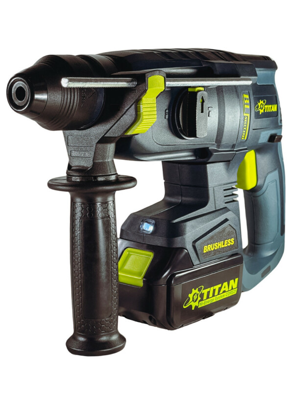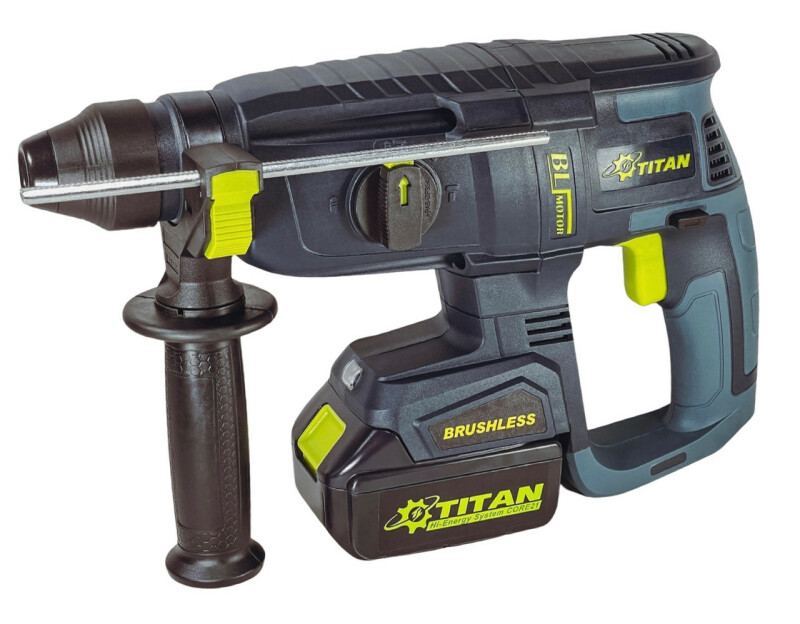 TITAN SYSTEM CORE 21 PRH2821LB-CORE Brushless Аккумуляторный перфоратор. Технические характеристики Частота вращения на холостом ходу – 0-1850 об/мин. Частота ударов на холостом ходу – 0-5100 уд/мин. Бесщеточный двигатель 21В. Максимальная энергия удара – 3,3Дж. Тип патрона: Патрон SDS-plus Диаметр сверления бетон – 28 мм. Диаметр сверления бетон (короной) – 68 мм. Диаметр сверления сталь – 13 мм. Диаметр сверления дерева – 30 мм. Питание от батарей – 18-21В Вес без батарей и аксессуаров – 2,8кг. Вес из батарей 5Ач – 3,3.кг Преимущества ● Аккумуляторный перфоратор PRH2821LB-CORE Brushless совместим со всеми батареями системы TITAN CORE 21, а также с помощью системы адаптеров можно использовать батареи от 18В до 21В, почти всех производителей аккумуляторного инструмента (адаптеры поставляются опционально). ● Бесщеточный двигатель постоянного тока с высоким КПД обеспечивает большую мощность и продолжительность работы без зарядки аккумулятора. Не требует технического обслуживания. ● Перфоратор TITAN PRH2821LB-CORE имеет 3 режима работы: 1 удар без вращения, 2 вращения с ударом, 3 сверления без удара. ● Механизм регулировки угла патрона обеспечивает поворот долота на 360 градусов с 40 положениями установки. ● Универсальный патрон SDS-plus обладает высокой удерживающей способностью и надежностью с возможностью быстрой замены оснастки. ● Высококачественный ударный механизм обеспечивает хорошую производительность и большой ресурс инструмента. ● Расцепляющая муфта, предохраняющая инструмент при заклинивании бура. ● Плавная регулировка частоты оборотов позволяет более точно и комфортно выполнить работу. ● Функция реверса позволяет изменять направления вращения. ● Защита от переразряда батареи. Защита от перегрузки и перегрева ● LED Подсветка встроена в ручку, прекрасно осветит зону работы. ● Легко устанавливаемая боковая рукоятка для уверенной работы с большими нагрузками. ● Эргономичный дизайн с мягкой прорезиненной ручкой, не скользит в руке и гасит вибрацию. ● Съемный кулачковый патрон и адаптер для сверления без удара. ● Удобный крепкий чемодан для транспортировки и хранения. Комплектация Аккумуляторный перфоратор TITAN PRH2821LB-1шт. Кулачковый патрон 1,5-13-1шт. Адаптер SDS-plus -1шт. Пластиковый чемодан.-1шт. Зубило SDS-plus – 1шт. Пика SDS-plus – 1шт. Сверло SDS-plus по бетону 6x160-1шт. Сверло SDS-plus по бетону 8x160-1шт. Сверло SDS-plus по бетону 10x160-1шт. Ограничитель глубины -1шт. Боковая упорная рукоятка.-1шт Инструкция.-1шт. 2 Аккумулятора на 5ач и зарядное устройство