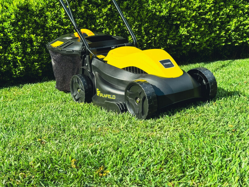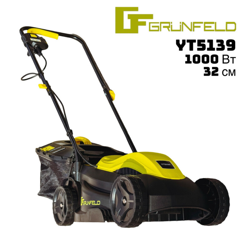 Электрическая газонокосилка GRUNFELD YT5139 с мощностью 1000 Вт действительно может стать отличным выбором для тех, кто ищет недорогой и эффективный инструмент для ухода за газоном. Благодаря мощному мотору и увеличенным размерам колес, эта модель обеспечивает хорошую маневренность и легкость в использовании. Простота подключения к бытовой сети 220 В делает ее использование удобным и доступным практически для каждого владельца частного дома или дачи. Важно также отметить, что электрические газонокосилки, в отличие от бензиновых аналогов, требуют меньше обслуживания и более экологичны, поскольку не выделяют вредные выхлопные газы. Преимущества ● Легкий вес - упрощает перемещение и хранение газонокосилки, делая ее удобной даже для тех, кто не имеет большого физического силы. ● Низкий уровень шума - обеспечивает более приятный процесс работы, особенно важно для жилых районов, где избыточный шум может быть проблемой для соседей. ● Высокая надежность и простота в обслуживании - снижают общие затраты на владение и обеспечивают длительный срок службы устройства. ● Корпус из полипропилена - обеспечивает устойчивость к коррозии и ударам, что важно для инструмента, используемого в саду. ● Складная ручка - значительно упрощает хранение газонокосилки, особенно в условиях ограниченного пространства. ● Регулировка высоты срезки газона - позволяет адаптировать инструмент под конкретные нужды газона, обеспечивая идеальный уровень стрижки. ● Травосборник из ткани и пластика - сочетает прочность и легкость, облегчая его опорожнение и чистку. Эти характеристики делают GRUNFELD YT5139 идеальным выбором для тех, кто ищет удобный, надежный и многофункциональный инструмент для поддержания газона в идеальном состоянии. Характеристики Производитель: GRUNFELD Тип двигателя: электро Напряжение 220В/50Гц Мощность 1000Вт Количество оборотов 2800об/мин Ширина скашивания 320мм Высота среза 25/40/55мм Вместимость травосборника 30л Вес 7кг