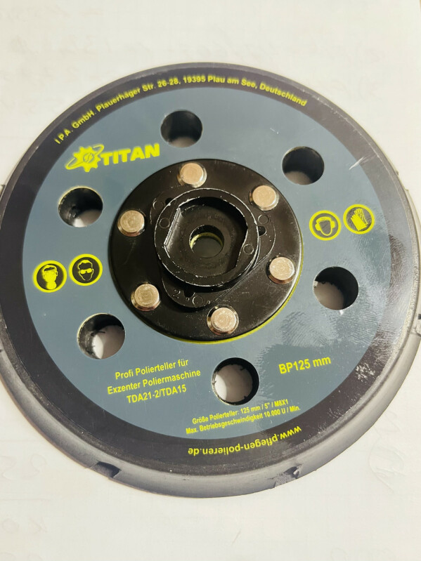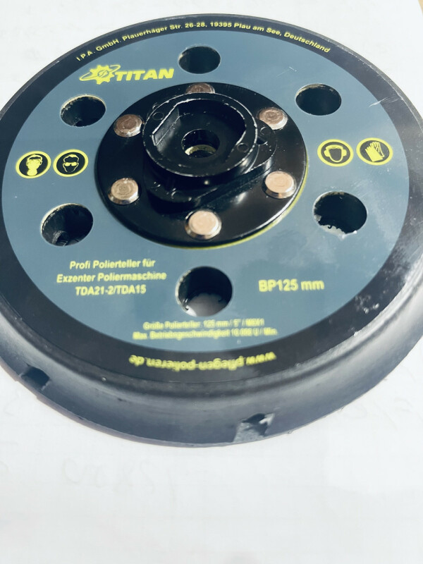 Диск-подошва 125 мм для крепления полировальных дисков из микрофибры для полировальных машинок, крепление липучка Velcro, количество отверстий 8+6+1. ДЛЯ ПОЛИРОВАЛЬНЫХ МАШИН TDA15 И TDA21-2