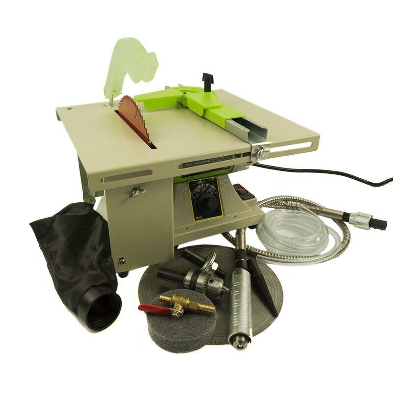 Многофункциональный станок BG3118 Многофункциональный станок BG-3118 является одним из лучших и, безусловно, самым мощным из многофункциональных станков на сегодняшний день. Вместе с тем, отличная дополнительная комплектация этого станка позволила значительно расширить его функциональные возможности. По своей сути это коллекторный электродвигатель, выгодно отличающийся от других станков такого типа своей огромной мощностью в 1300 Вт и наличием высокопрочных подшипников. Обороты двигателя составляют от 500 до 6500 мин. Этот двигатель не теряет ни мощность, ни высокий крутящий момент даже при больших нагрузках на минимальной скорости. Он предназначен для длительной непрерывной работы в мастерских и производстве. Вес этого станка достигает почти 6 кг, тяжелое чугунное основание обеспечивает отсутствие вибрации, что бесспорно выделяет его среди подобных станков. На стол станка размером 270 на 300 мм крепится боковой упор, что позволяет очень точно производить распил любых деталей из камня (для чего есть герметичный поддон и возможность подачи воды сверху, через защитный кожух непосредственно на пиле), а также пластика и дерева (алмазный). и пильный круг с победными напайками идут в комплекте). На вал, выходящий с обратной стороны от пилы, можно установить держатель для дисков и камней, специальный конус с резьбой («морковь») для войлочных или муслиновых кругов или трехкулачковый патрон 1-10 мм, в который можно зажать полировальный круг, сверло, фрезу и т.п. Но этим способности станка не ограничиваются. В комплекте идет качественный гибкий вал в металлической гофре с профессиональным наконечником Foredom №30, что превратит ваш станок в полноценный гравер-бормашину и позволит добиться новых уровней в вашем творчестве и профессионализме. Характеристики: Двигатель мощностью: 1300 Вт Диаметр диска циркулярной пилы: 180 мм Размер стола: 270 на 300 мм Регулируемые обороты от 500 до 6.500 Трехкулачковый патрон 1-10 мм Гибкий вал с наконечником в Fredom №30 Станок может работать в следующих режимах: Циркулярная пила по дереву, по камню Шлифовальный, полировальный станок с кругом 125мм Бормашина ( гибкий вал с наконечником Fredom№30) В комплекте, также идёт трехкулачковый патрон под насадки с хвостовиком до 10мм.
