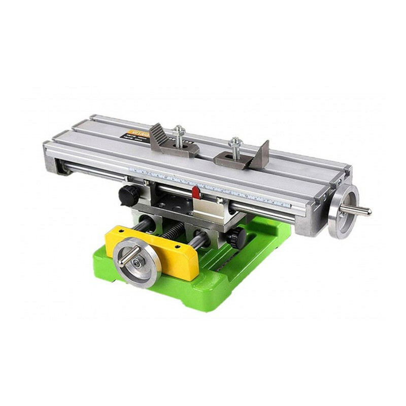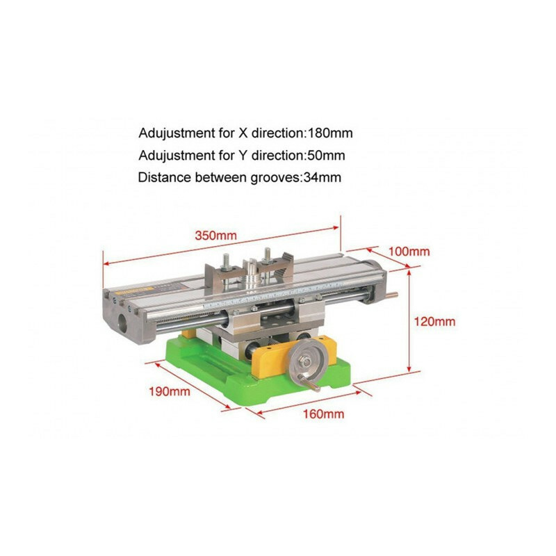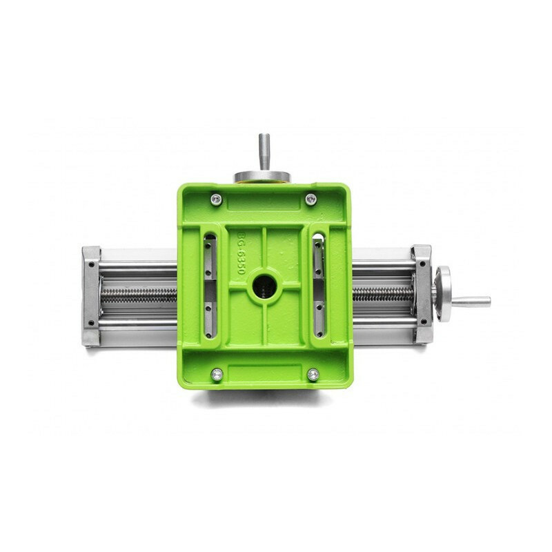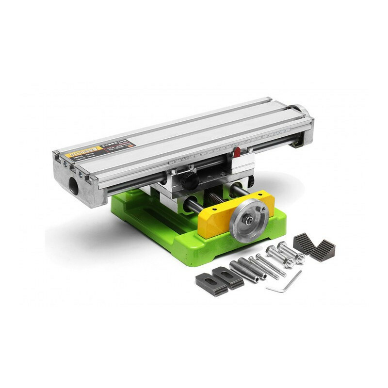 Качественный координатный стол, размер рабочей поверхности 350х100мм, ход по оси Х -180мм, по оси Y -50мм, линейное перемещение обеспечивают валы с линейными подшипниками, винты на осях трапециевидные с шагом 3мм. ОПИСАНИЕ Стол имеет солидный вес и устойчивость благодаря массивному основанию отлитому из чугуна, обеспечивает очень мягкий ход по осям (очень легко крутятся ручки), практически все детали стола сделаны из металла, кроме двух ручек винтов устраняющих люфт. Рабочая поверхность стола из анодированного алюминия имеет размеры 350х100мм, вдоль стола идут три Т-паза под закладные винты. Стол укомплектован закладными винтами 2шт, две прижимных пластины, и два ступенчатых треугольника. Характеристики: Размер стола: 350(мм) на 100(мм) Перемещение по X: 180(мм); Перемещение Y: 50(мм), Станина изготовлена из алюминия с дополнительными ребрами жесткости; 3 фрезерованные Т-образные пазы, для установки закладных болтов.; Подвижная линейка помогает удобному размещению заготовки; Цена деления лимба: 0,05 мм Материал рабочей поверхности: алюминий