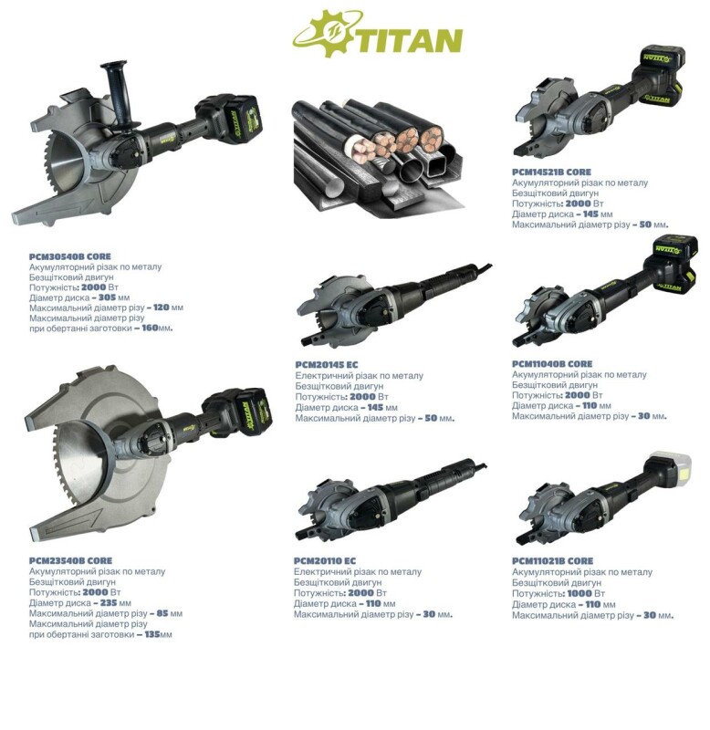 БЕЗ АККУМУЛЯТОРА И ЗАРЯДНОГО УСТРОЙСТВА для резки арматуры и кабелей большого сечения TITAN SYSTEM CORE 21 PCM11021B-CORE Brushless Аккумуляторный резак по металлу. Технические характеристики Частота вращения на холостом ходу - 2100 об/мин. Бесщеточный двигатель - 21 В. Мощность: 1000 Вт, Диаметр диска - 110 мм. Максимальный диаметр реза - 30 мм. Диаметр посадочного места диска - 22,2 мм. Резьба шпинделя - М14. Диаметр обхвата корпуса - 48 мм. Питание от батарей - 18-21 В Размер упаковки (Д х Ш х В) - 44 cm*23 cm*12.5 cm Вес без батарей и аксессуаров - 2,4 кг. Вес с батарей 5 Ач - 3,0 .кг Преимущества ● Аккумуляторный резак TITAN PCM11021B-CORE – это современное и мощное устройство, предназначенное для быстрой и эффективной резки кабелей, арматуры и других металлических материалов. Устройство идеально подходит для профессионального применения в строительстве, энергетике, промышленности и других сферах, где требуется высокая производительность и надежность. ● Высокая эффективность резки: Резак способен справляться с различными материалами, включая медные и алюминиевые кабели, арматуру и другие виды металла. Он обеспечивает чистый и ровный рез, минимизируя разрушение материала. ● Аккумуляторный резак по металлу, TITAN PCM11021B-CORE совместим со всеми батареями системы TITAN CORE 21, а так же с помощью системы адаптеров, можно использовать батареи от 18В до 21В, почти всех производителей аккумуляторного инструмента MAKITA, DEWALT, BOSCH, MILWAUKEE и т.д. (адаптеры поставляются опционно). ● В аккумуляторном резаке по металлу TITAN PCM11021B-CORE установлен современный бесщеточный двигатель с высоким КПД, обеспечивающий большую мощность эквивалент 1000 Вт и продолжительность работы без подзарядки. Не требует технического обслуживания. ● Низкая себестоимость реза по сравнению с абразивными дисками, экономия до 1000%. ● В отличие от обычных отрезных станков, при использовании резака TITAN PCM11021B-CORE для резки металла практически не возникает искр, что повышает безопасность работы. ● VTC контроллер - Функция плавного пуска и контроля стабильной частоты вращения, без падения мощности. ● Высокий крутящий момент благодаря, мощному двухступенчатому редуктору. ● Литая защита диска с упором, обеспечивает удобство при резке и надежно защищает оператора от осколков. ● Функция защиты от перегрузки, гарантирует безопасную работу пользователя, в случае аварийной ситуации (внезапного замедления или остановки диска) срабатывает автоматическая остановка электромотора, для возобновления работы необходимо перезапустить инструмент. ● Всторенная защита от переразряда батареи. ● Эргономичный дизайн и легкий вес устройства делают его удобным для длительной работы. Прорезиненные ручки обеспечивают надежный захват и комфорт при использовании. ● Резак комфортно лежит в руке, обхват корпуса, всего 48 мм, позволяет длительное время работать не уставая. ● Кнопка блокировки шпинделя, для легкой смены инструмента. ● Аккумуляторный резак для кабелей и арматуры TITAN PCM11021B-CORE – это незаменимый инструмент для профессионалов, который значительно ускоряет выполнение работ и повышает их качество. Благодаря своим выдающимся характеристикам, он становится отличным помощником в любой рабочей среде. Комплектация ● Аккумуляторный резак TITAN PCM11021B-CORE. ● Твердосплавный диск 110х1,5х1,1 мм -1шт. (установлен на инструмент) ● Дополнительная ручка -1шт. ● Ключ 2шт. ● Защитны