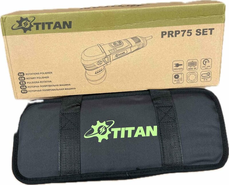 Преимущества Компактная ротационная полировальная машина TITAN PRP75 Set VTC контроллер Функция плавного пуска и контроля стабильной частоты вращения, без падения мощности Большой комплект аксессуаров идеально подходит для мелкосерийных работ Легкий вес всего 1,3 кг (с кабелем питания 1,75 кг.) позволяет комфортно работать одной рукой Кабель питания длиной 6 метров обеспечивает оптимальный радиус действия Эргономичный дизайн с мягкой прорезиненной ручкой, не скользит в руке и гасит вибрацию Характеристика: Мощность двигателя 600 Вт Напряжение сети 230 В Частота тока 50 Гц Частота вращения без нагрузки 2000-4500 об/мин. Диаметр подошвы 30 50 75 мм. Сетевой кабель 6 метров Вес 1.3 кг. Полировальная машина TITAN PRP75 Set - 1шт. опорная 30, 50, 75 мм ключи комплект угольных щеток 3 удлинителя 1 гибкий вал 20 полировальных дисков Сумка для переноски и хранения Инструкция по эксплуатации упаковка коробка