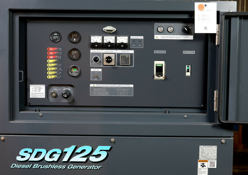 SDG125S-3A6 Характеристики ГЕНЕРАТОР Тип Двойное напряжение Частота (Гц) 50 / 60 3-фазный 4 провода - Основная мощность (кВА) 100 / 125 - Резервная мощность (кВА) 110 / 137,5 - Напряжение (В) 200/400 / 220/440 - Ток (А) 289/144 / 328/164 Однофазный вспомогательный выход - Напряжение (В) 100 / 110 - Выделенные клеммы (кВА) 10×2 / 11×2 - Выходы (кВА) 1,5×2 / 1,65×2 Коэффициент мощности (%) 3-фазный 80 (отстающий) / Однофазный 100 ДВИГАТЕЛЬ Марка, модель HINO J08C-UP (TOYOTA) Тип Прямой впрыск, с турбонаддувом Номинальная мощность (кВт) 96,3 / 113,6 Номинальная мощность (л. с.) 131 / 153 Номинальная скорость (мин-1) 1500 / 1800 Емкость топливного бака (л) 250 Объем моторного масла (л) 24,5 Аккумулятор × количество 95D31R×2 РАЗМЕРЫ И ВЕС и т. д. Д×Ш×В (мм) 2990×1180×1480 Сухая масса (кг) 2050 Эксплуатационная масса (кг) 2300 Уровень звуковой мощности в децибелах (дБ) 90 / 92 Уровень звукового давления (дБ[A]) 63 / 64 Норматив выбросов JPN Stage 2