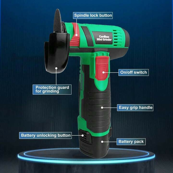 TAG0312B Аккумуляторная угловая шлифмашина. Технические характеристики Частота вращения на холостом ходу – 20000 об/мин. двигатель – 12В. Диаметр диска – 76 мм. Диаметр посадочного места диска – 10мм. Глубина пропила – 16 мм. Резьба шпинделя М5. Питание от батарей – 12В. Размеры упаковки (Д х Ш х В) – 240 x 170 x 90 мм Вес упаковки: 0,9 кг. Вес шлифмашины с батарей 2Ач – 0,61 кг. Преимущества ● Аккумуляторная мини угловая шлифмашина TEGATOK TAG0312B подходит для резки, обдирки различных материалов. Компактная и легкая. ● В аккумуляторной болгарке TEGATOK TAG0312B установлен современный двигатель с высоким КПД, обеспечивающий большую мощность и продолжительность работы без подзарядки. Не требует технического обслуживания. ● Миниатюрные размеры, длина 202 мм и вес 750 г в батарейном месте. ● Болгарка комфортно лежит в руке, обхват корпуса, всего 155мм (диаметр 49мм), позволяет длительное время работать не уставая. ● Электронный тормоз двигателя обеспечивает мгновенную остановку вращения при выключении инструмента. ● Защита от переразряда батареи. ● Эргономичный дизайн с мягкой прорезиненной ручкой, не скользит в руке. ● Литий-ионный аккумулятор напряжением 12 В емкостью 2 Ач, без эффекта памяти, можно заряжать и использовать при любом уровне заряда. ● Кнопка блокировки шпинделя для легкого изменения инструмента. ● Дополнительный защитный кожух легко регулируется без инструментов. Просто проворачивается к нужному положению. ● Машинка поставляется в удобной фирменной сумке с карманами для хранения аксессуаров. Оборудование ● Угловая шлифмашина TEGATOK TAG0312B. ● Отрезной диск 1,2х76мм -2шт. ● Батарея -2шт. ● Зарядное устройство -1шт. ● Защита 76мм -1шт. ● Ключ 1шт. ● Инструкция. ● Сумка.