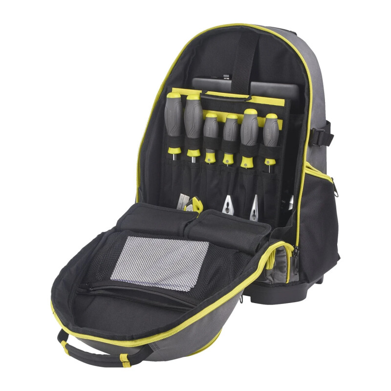 Характеристики Ryobi рюкзак. Максимальная нагрузка 20кг. Рассчитан на работу в тяжелых условиях независимо от того, работаете ли вы в пыльном помещении или после дождливого дня Водонепроницаемое твердое дно из прочного полипропилена, идеально подходящее для работы на грязных влажных поверхностях Оснащен внутренним отделением для ноутбука с мягкой подкладкой и регулируемым ремешком. Два внутренних закрывающихся кармана и один карман с молнией Комплектуется двухсторонним органайзером для ручного инструмента Рюкзак изготовлен из полиэстера 600 ден и имеет усиленные карманы из полиэстера плотностью 1680 ден, обеспечивающие в 3 раза больший срок службы и максимальную устойчивость к износу Мягкие плечевые ремни обеспечивают максимальный комфорт во время транспортировки Высота (мм)340 Длина (мм)490 Ширина (мм)190 Вес (кг)1.5
