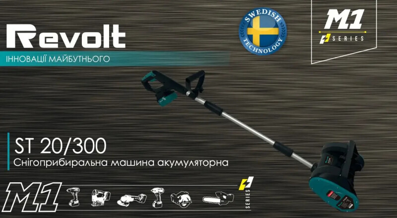 Снегоуборочная аккумуляторная машина Revolt ST 20/300 (без АКБ и ЗУ) – это современная аккумуляторная снегоуборочная машина, предназначенная для быстрой и эффективной уборки снега с дорожек, дворов и тротуаров. Инструмент обеспечивает комфортное использование благодаря своей автономности, высокой производительности и удобству эксплуатации. Без АКБ и ЗП Основные особенности Напряжение аккумулятора: 20 В Высокая мощность гарантирует стабильную и эффективную работу устройства даже при интенсивной нагрузке. Количество оборотов: 2 200 об/мин Отличная производительность для быстрой уборки снега. Ширина сборки: 30 см Оптимальная ширина позволяет очищать как узкие дорожки, так и более широкие площади. Высота уборки: 15 см Эффективно справляется даже с глубоким снегом. Высота выброса снега: до 6 м Возможность регулировки выброса позволяет направлять снег в нужную сторону. Степень защиты: IPX5 Надежная защита от влаги и пыли обеспечивает долговечность устройства. Преимущества Автономность и мобильность Аккумулятор освобождает от необходимости подключения к розетке, что делает устройство идеальным для использования в отдаленных местах. Экологичность Работа на аккумуляторах снижает шум и исключает вредные выбросы. Компактность и простота управления Легкий вес и эргономичная конструкция обеспечивают комфорт даже при продолжительном использовании. Универсальность Подходит для уборки свежего и утрамбованного снега. Применение Revolt ST 20/300 – это идеальное решение для владельцев частных домов, дач и небольших коммерческих территорий. Машина позволяет быстро очистить подъездные пути, пешеходные дорожки или площадки, экономя время и силы. Выбирая Revolt ST 20/300, вы получаете сочетание современных технологий, надежности и удобства для эффективной борьбы со снегом. Характеристики Напряжение аккумулятора: 20В Количество оборотов: 2200 об/мин. Ширина сборки: 30см Высота уборки: 15см Высота выбрасывания снега: 6м Степень защиты: IPX5 Комплектация Без АКБ и ЗУ