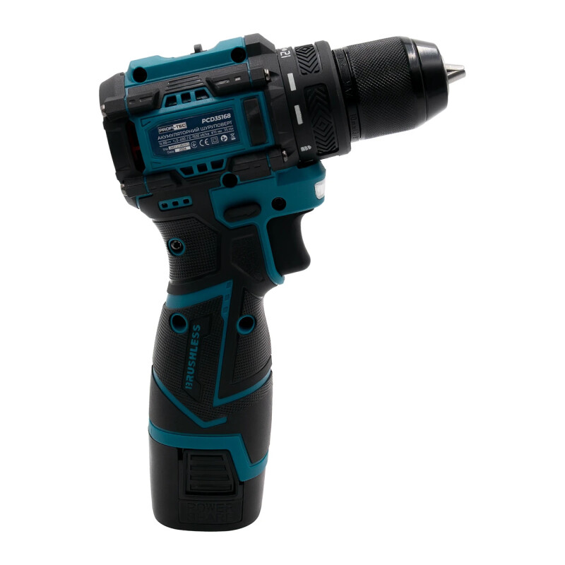 Аккумуляторный шуруповерт PROFI-TEC PCD35168BL — удобный инструмент, предназначенный для быстрой и эффективной закрутки и откручивания шурупов, винтов, саморезов, конфирматов, дюбелей, болтов и т.д. Этот инструмент станет отличным решением для монтажа гипсокартона, деревянных конструкций, а также сверления различных материалов. Особенности аккумуляторного шуруповерта PROFI-TEC PCD35168BL: Диаметр патрона позволяет работать оснасткой с хвостовиками от 0,8 до 10 мм; Реверс и 21+1 ступени крутящего момента до 35 Нм для выбора оптимального режима работы; Эргономичный корпус с прорезиненной ручкой для лучшей фиксации в руке; Высокая производительность в режиме сверления и шуруповерта обеспечивает двухскоростной редуктор; Легкая замена оснастки благодаря быстрозажимному патрону; Подсветка рабочей зоны для комфортной работы в плохо освещенных местах. Комплект поставки: Аккумуляторный шуруповерт PROFI-TEC PCD35168BL; Аккумулятор PT1620 (2.0 Ач) ×2; Зарядное устройство; Бита TS2 (70 мм) ×1; Инструкция по эксплуатации; Гарантийный талон; Пластиковый кейс-органайзер. Характеристики Производитель: PROFI-TEC Напряжение аккумулятора: 16,8 В Тип аккумулятора: Li-ion Тип двигателя: бесщеточный Диаметр патрона: 10 мм Максимальный крутящий момент: 35 Нм Количество ступеней регулировки крутящего момента: 21+1 Количество скоростей работы: 2 Количество оборотов холостого хода: 0 — 400 / 0 — 1500 об/мин Максимальный диаметр сверления (сталь): 10 мм Максимальный диаметр сверления (дерево): 30 мм Вес нетто/брутто: 0,8 / 2,2 кг Габариты упаковки: 270×240×80 мм Гарантия: 24 месяца