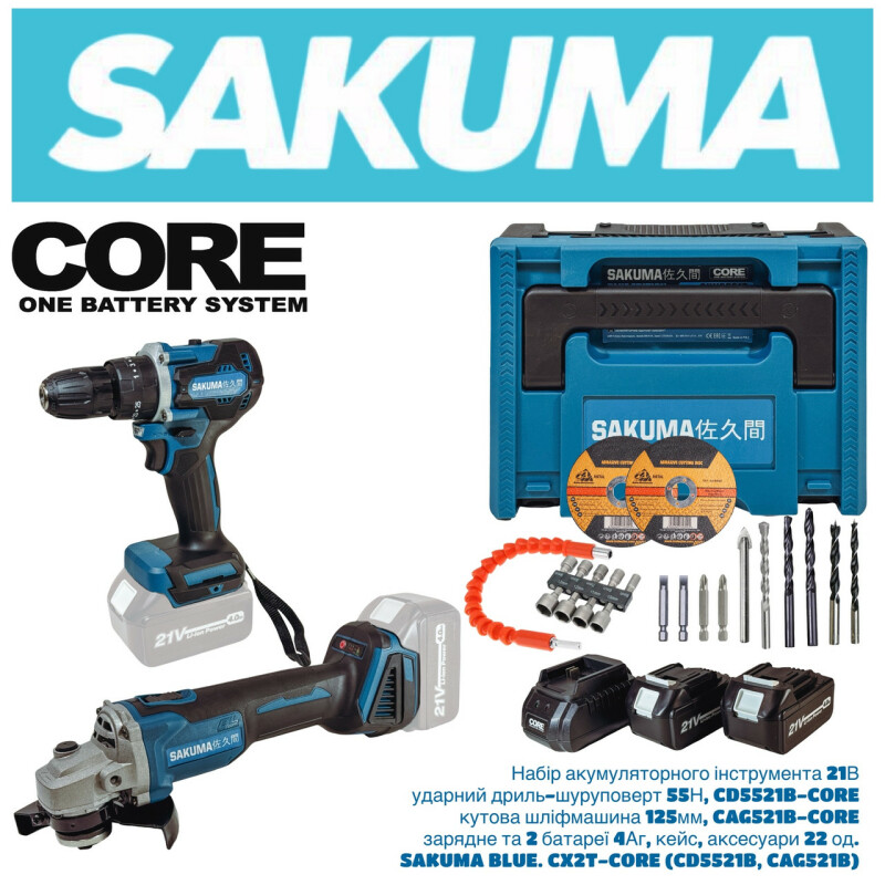 Набор аккумуляторного инструмента SAKUMA BLUE CX2T-CORE 21v шуруповерт и угловая шлифмашина