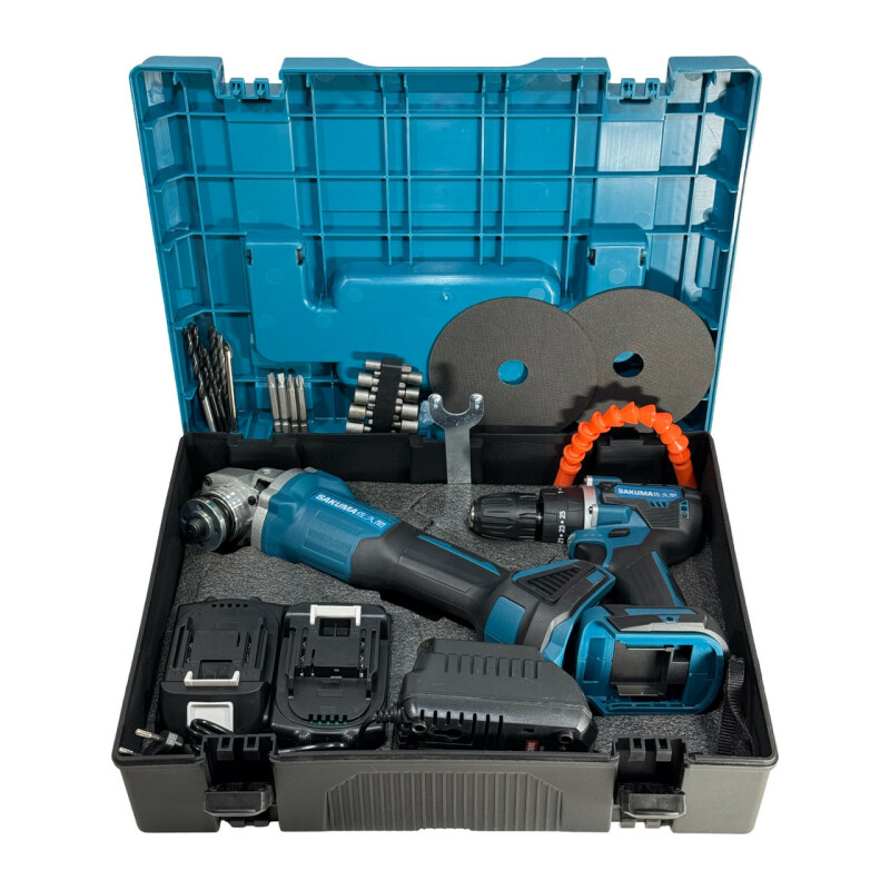 Интернет-магазин megapega.com.ua - Инструмент и Мебель большой выбор товара по низким ценам\\Набор аккумуляторного инструмента SAKUMA BLUE CX2T-CORE 21v шуруповерт и угловая шлифмашина