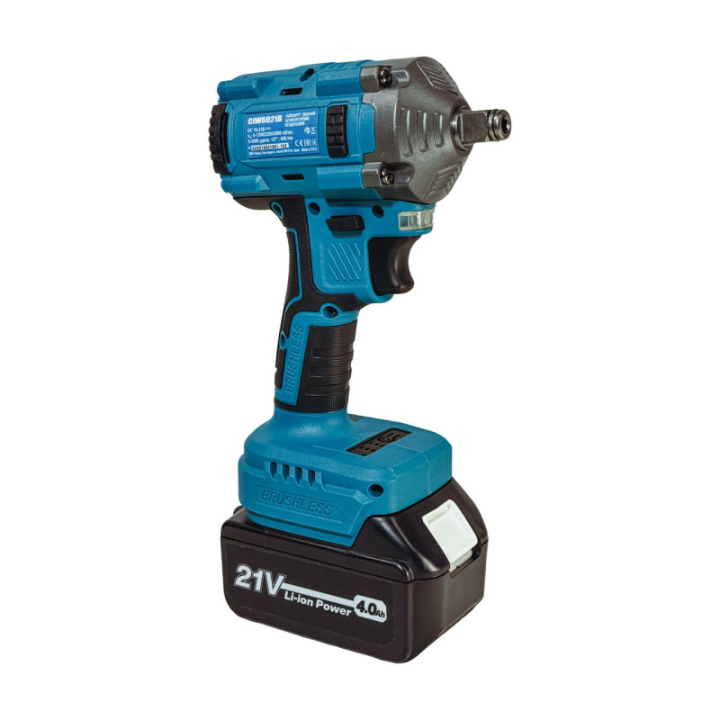 SAKUMA SYSTEM CORE 21 CIW6021B-CORE Brushless аккумуляторный ударный гайковерт. Технические характеристики Частота вращения на холостом ходу: 0-1300/2200/3000 об/мин. Частота ударов: 0-3000 уд/мин Бесщеточный двигатель: 21В. Максимальный крутящий момент: 600 Нм. Крепление оснастки: квадрат 1/2». Питание от батарей: 18-21В Вес без батареи: 1,4 кг. Вес с батареями 4Ач: 1,8 кг. Преимущества ● Аккумуляторный ударный гайковерт SAKUMA BLUE CIW6021B-CORE, совместимый со всеми батареями системы SAKUMA CORE 21, а также с помощью системы адаптеров можно использовать батареи почти всех производителей аккумуляторного инструмента (адаптеры поставляются опционально). ● Intelligent Control System - Смарт система выбора и контроля работы с сенсорным управлением и светодиодной индикацией. ● Широкий диапазон выбора скорости 0-1300/2200/3000 об/мин. ● Высокий крутящий момент зажима 600 Нм позволяет справляться с тяжелыми работами по затягиванию и сверлению. ● В гайковерте CIW6021B-CORE установлен современный бесщеточный двигатель с высоким КПД, обеспечивающий большую мощность и продолжительность работы без подзарядки. Не требует технического обслуживания. ● Прочный металлический корпус редуктора, обеспечивающий высокий ресурс инструмента. ● Защита от переразряда батареи. ● Электронный тормоз облегчает выполнение серийных задач с высокой точностью. ● LED Подсветка встроена в ручку, прекрасно освещает зону работы. ● Эргономичный дизайн с мягкой прорезиненной ручкой, не скользит в руке и гасит вибрацию. Комплектация Гайковерты SAKUMA BLUE CIW6021B-CORE: 1 шт. Пластиковый чемодан: 1 шт. Ударная головка М13: 1 шт. Ударная головка М17: 1 шт. Ударная головка М19: 1 шт. Ударная головка М21: 1 шт. Инструкции. CIW6021B-CORE SET02. Поставляется с 2 батареями 4Ач. и зарядным устройством