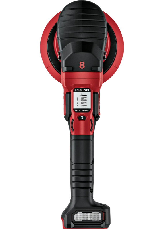 Преимущества Мощность, сравнимая с электрической полировальной машиной, на протяжении всего срока службы аккумулятора. Постоянная электроника CDC предотвращает колебания скорости. Кнопка непрерывного регулирования скорости: для плавного запуска и фиксации для непрерывной работы. Простая регулировка скорости с помощью колеса выбора скорости с фиксированными положениями, доступного с обеих сторон. Идеальный диапазон скоростей для применения в автомобильной, морской и авиационной промышленности. Идеально подходит для удаления средних царапин и устранения следов износа и голограмм. Максимальная эффективность за один этап с системой FLEX 1-step, с фиолетовой губкой и фиолетовой полиролью. Новое поколение бесщеточных двигателей, обеспечивающих высокую эффективность и производительность. Новая высокопроизводительная коробка передач для максимального снижения шума и вибрации. Дополнительная внешняя коробка передач обеспечивает ротационный привод с одновременным случайным орбитальным движением. Эргономичные рукоятки с мягким захватом для идеального ведения по поверхности. Плоская головка редуктора уменьшает расстояние до поверхности. Это позволяет идеально вести инструмент в любом положении. С прорезиненной опорой для безопасного установления. Микропроцессорное управление с плавным запуском, защитой от повторного запуска после сбоя питания, контролем температуры, защитой от перегрузки. Электронная система управления (EMS) защищает машину, продлевает срок службы и повышает эффективность Светодиодный индикатор заряда аккумулятора Аккумуляторная система FLEX: подходит для всех аккумуляторных батарей FLEX 18 В Технические данные Напряжение аккумулятора 18 В Емкость аккумулятора 2,5 / 5,0 / 8,0 Ач Макс. размер опорной пластины 150 мм Ход полировки 8 мм Скорость холостого хода 225 - 700 об/мин Частота вращения, без нагрузки 2700 - 8700 об/мин Размеры ШxДxВ 388 x 125 x 126 мм Вес без аккумулятора 2,0 кг Уровень звукового давления в соответствии с EN 60745 79 дБ(A) Вибрация в соответствии с EN 60745 5,1 м/с²