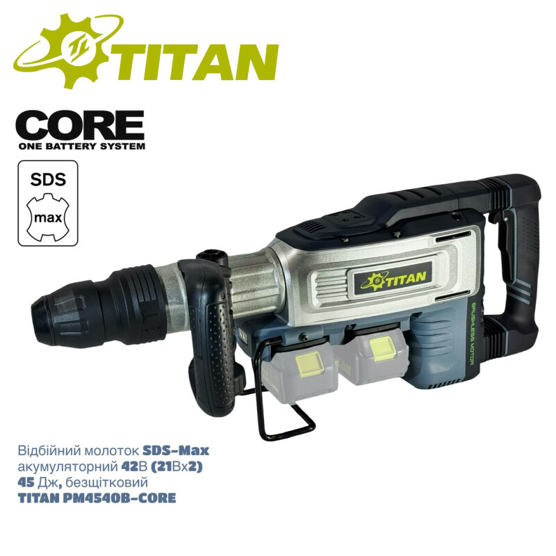 Интернет-магазин megapega.com.ua - Инструмент и Мебель большой выбор товара по низким ценам\\Аккумуляторный отбойный молоток TITAN PM4540B-CORE SDS-Max 21Вх2 (42В), 45 Дж