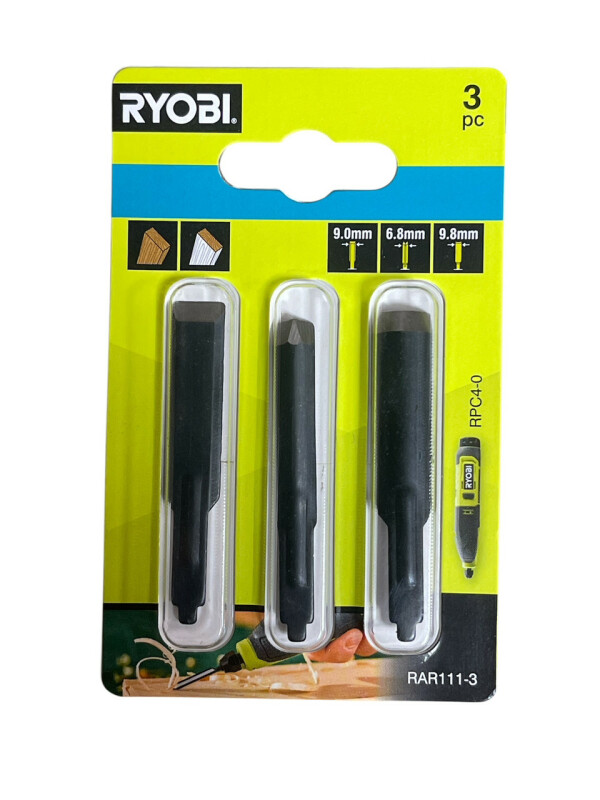 Комплект резцов из 3 шт для электростамески PROXXON MSG и аккумуляторной стамески RYOBI Характеристики Набор из трех долот идеален для резки древесины и удаления краски Для использования с RPC4 Содержит Прямое долото, V-образное долото, U-образное долото