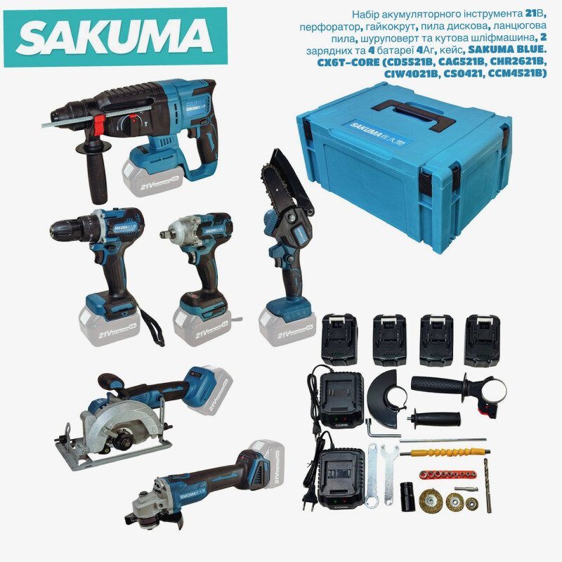 Набор аккумуляторного инструмента 21В 6 в 1 SAKUMA BLUE CX6T-CORE