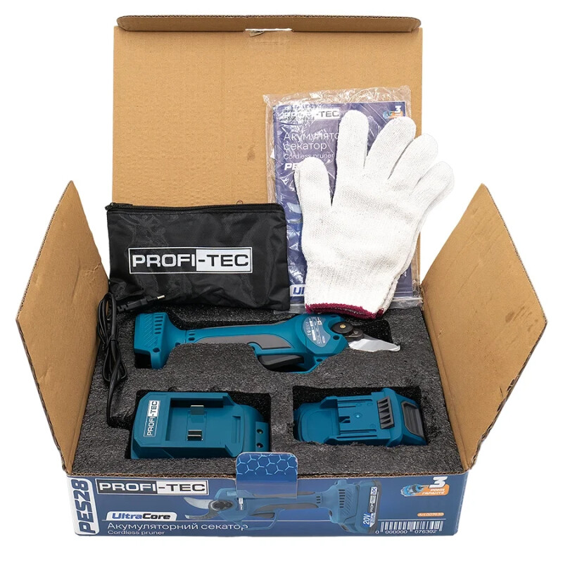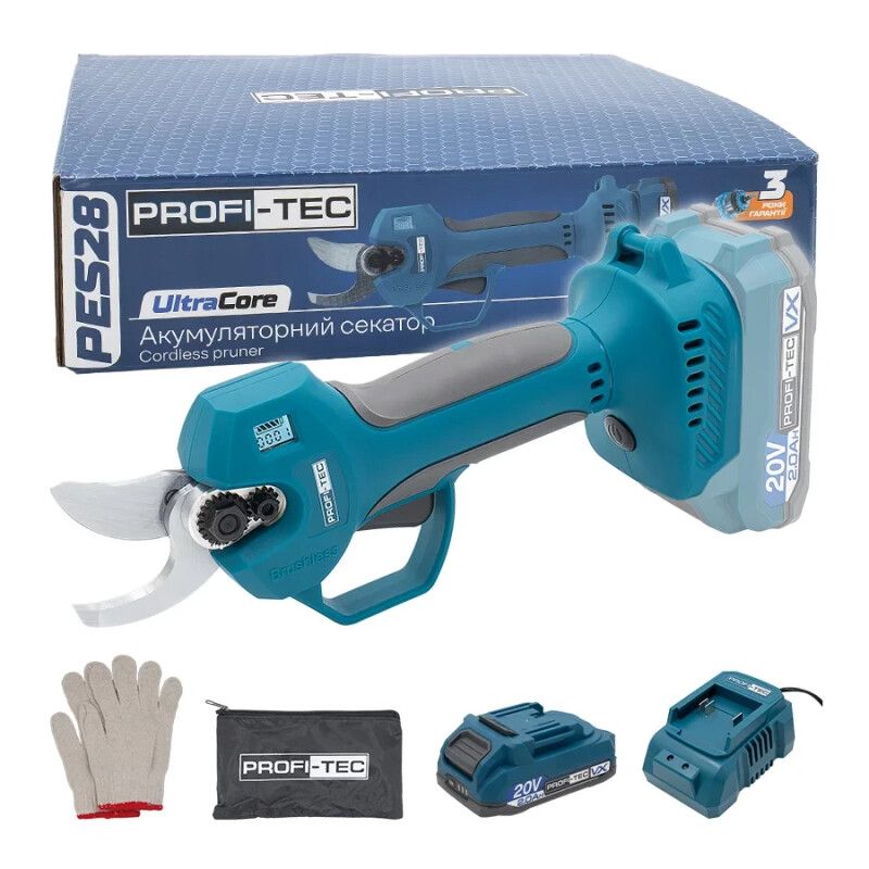 Аккумуляторный секатор PROFI-TEC PES28 UltraCore (1×PT2020VX (2.0 Ач), зарядное устройство)
